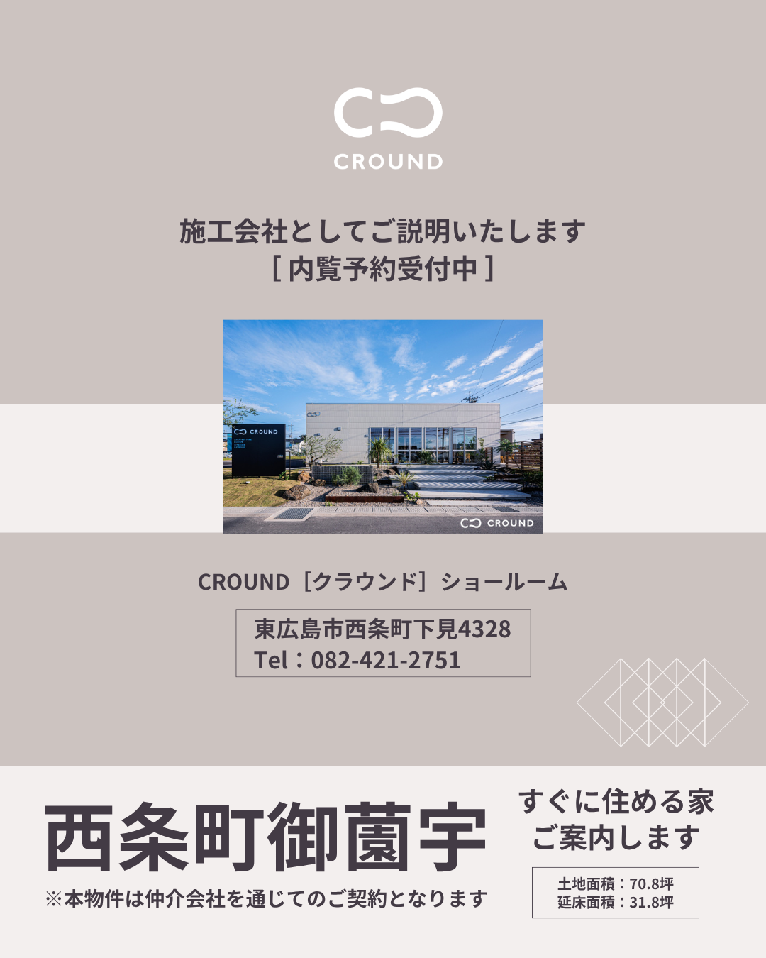 なお、ご契約につきましては仲介会社を通じてのお手続きとなりますが、